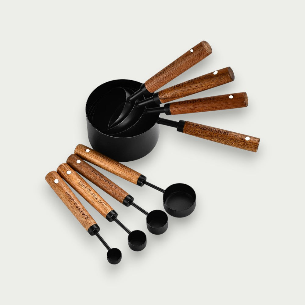 Criado para quem valoriza o essencial — aroma, proporção, intenção — cada caneca e colher revela camadas de sabor e textura, elevando receitas comuns a experiências memoráveis. Seu design em aço inoxidável com cabo de madeira dourada, aliado à escala precisa, une beleza, funcionalidade e sofisticação em perfeita harmonia.
